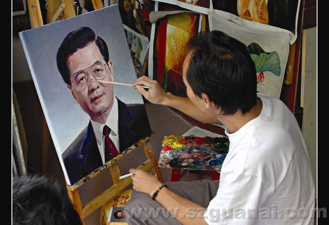 大芬油畫村的畫師在精心作畫組照(黃佩儀攝)