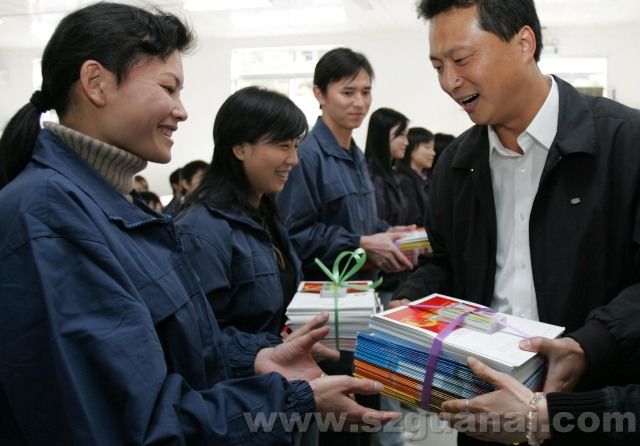 2007年1月22日下午,深圳市共青團工作人員前往蓮塘工業區慰問外來青工。為他們帶來了電話卡,刊物以及健康飲品,祝愿他們工作順利,春節愉快。團市委書記張文為青工們送來了精神食品。(商報記者 商報姜志強 攝影報導)