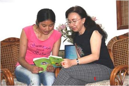 (李明教導(dǎo)藏族女兒學(xué)習(xí)語(yǔ)文課)