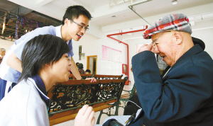 昨日,寶安中學學生到寶安福利院開展“愛心周末”學雷鋒做好事獻愛心活動,給福利院老人和孩子送去食品,學生們還表演了文藝節(jié)目,與老人和孩子們共度難忘周末。圖為學生們與老人們親切地拉家常。本報記者陳錫明 通訊員 鄭 蘭 陳遠林 攝