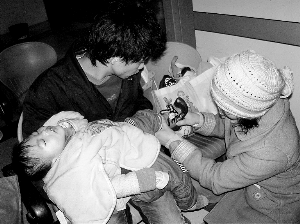 家住福田的張女士是位兩歲孩子的媽媽。昨天,她在家中看了本報報道之后,決定無論如何也要到醫(yī)院來看看。她帶來了一罐奶粉及自己孩子已經(jīng)穿不下的舊衣服,臨走還掏出了自己身上幾乎所有的錢。“孩子的腳怎么這么涼?”看到孩子腳上只穿了襪子,張女士細心地握住了孩子的腳,發(fā)現(xiàn)果然冰涼。說起來真讓人心酸,陳嘉晉長這么大還沒有穿過鞋。好在昨天下午有熱心市民送來了兩雙新鞋,其中一雙還是千針萬線納出來的棉布鞋。張女士蹲下來仔細地為嘉晉穿上了新棉鞋,一邊穿還一邊感慨,一個大男人照顧這么小的孩子,真是難為他了。