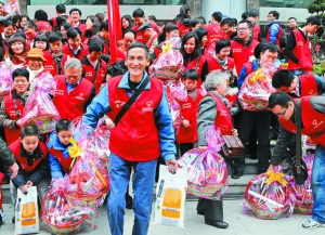 8年的堅持,匯聚成一面面愛心旗幟,高高飄揚在鵬城上空。關愛,成為兔年新春最動人的音符。昨天(2月1日)上午9時,由市關愛辦、深圳晚報社主辦的“溫暖年夜飯全城愛心大行動”拉開帷幕,當天深圳晚報百名采編人員、望家歡公司員工和百名熱心市民攜手,為全市120戶特困家庭送去年夜飯大禮籃和溫馨祝福。與此同時,由數家愛心企業提供的數百份“愛心簡餐”也送到了無家可歸者、在救助站里的留守人員以及特困勞務工的手中。