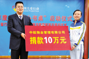 中航物業(yè)管理有限公司總經(jīng)理朱俊春說(shuō),中航物業(yè)在致力于打造中國(guó)最值得尊重的物業(yè)管理服務(wù)集成商的同時(shí),也積極投身公益慈善活動(dòng),協(xié)辦“愛(ài)心小書(shū)桌”活動(dòng)就是最好的體現(xiàn)。去年協(xié)辦活動(dòng)后,看到“愛(ài)心小書(shū)桌”活動(dòng)取得了顯著的成果,因此今年公司繼續(xù)對(duì)活動(dòng)給予大力支持,希望小書(shū)桌活動(dòng)能繼續(xù)壯大。