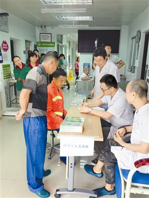 醫(yī)院對(duì)環(huán)衛(wèi)工人進(jìn)行免費(fèi)體檢。