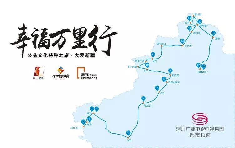為慶祝改革開放40周年,深圳廣電集團都市頻道聯合多家單位和愛心市民,推出大型公益環邊境行活動“幸福萬里行”?;顒訌纳钲诔霭l,行走祖國邊境線,用車轍丈量祖國山河巨變,用鏡頭記錄美好生活變遷。 “幸福萬里行”共設置新疆段、西藏段、西南段、內蒙古段、東北段、東南沿海段等六段邊境行程,目前已完成新疆段和西藏段的行程,同步啟動為兔唇孩子免費手術的“微笑娃娃”項目和資助困難家庭行動,活動至今累計播出電視新聞報道50篇。